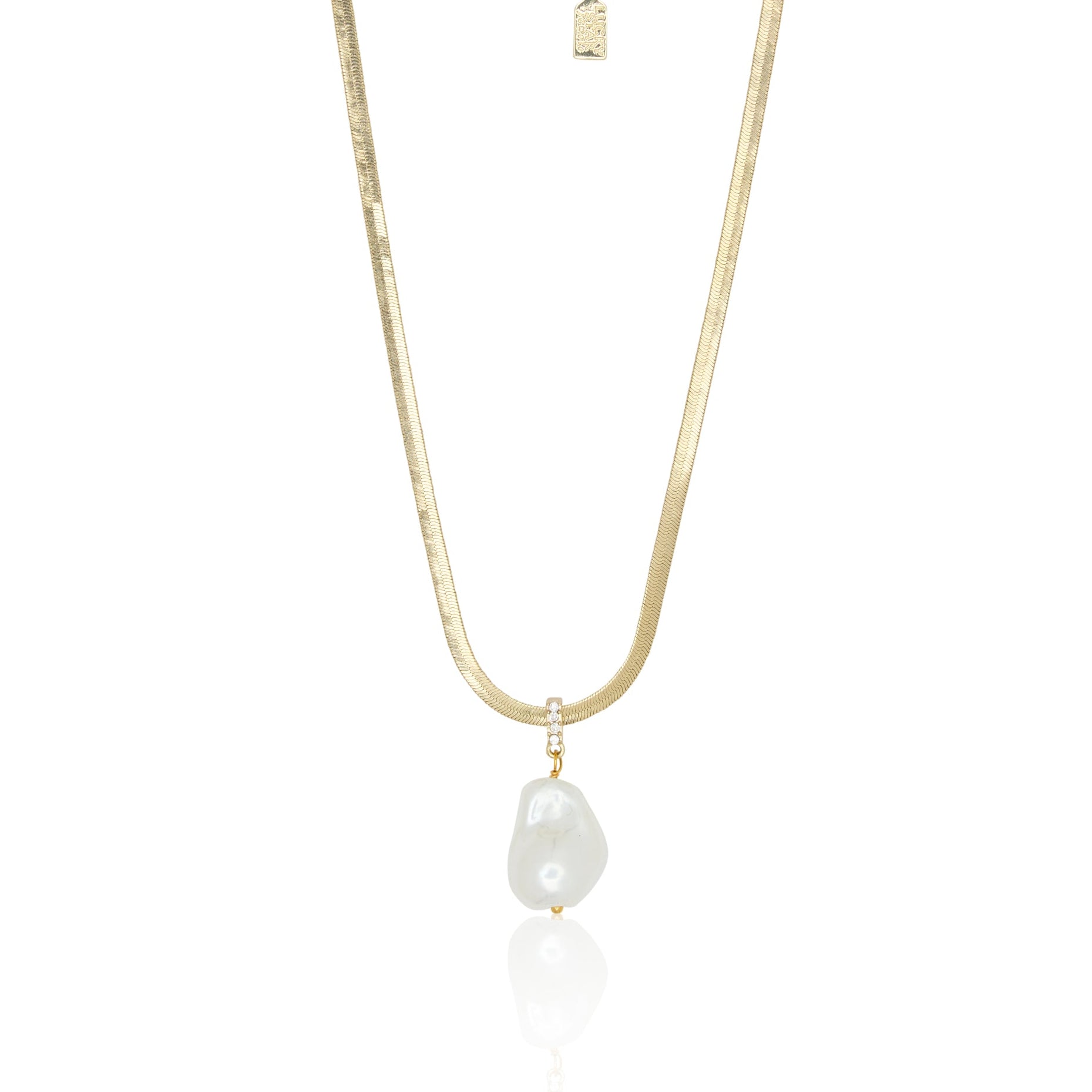 From Aasoiree to your everyday style, our versatile pearl slinky necklace is sure to stand out. Features 14K Gold-Plated Over Brass, Genuine CZ and Pearl Accents. Measures 15" Long With 2" Extender. Pearl Drop Measures 3/4".