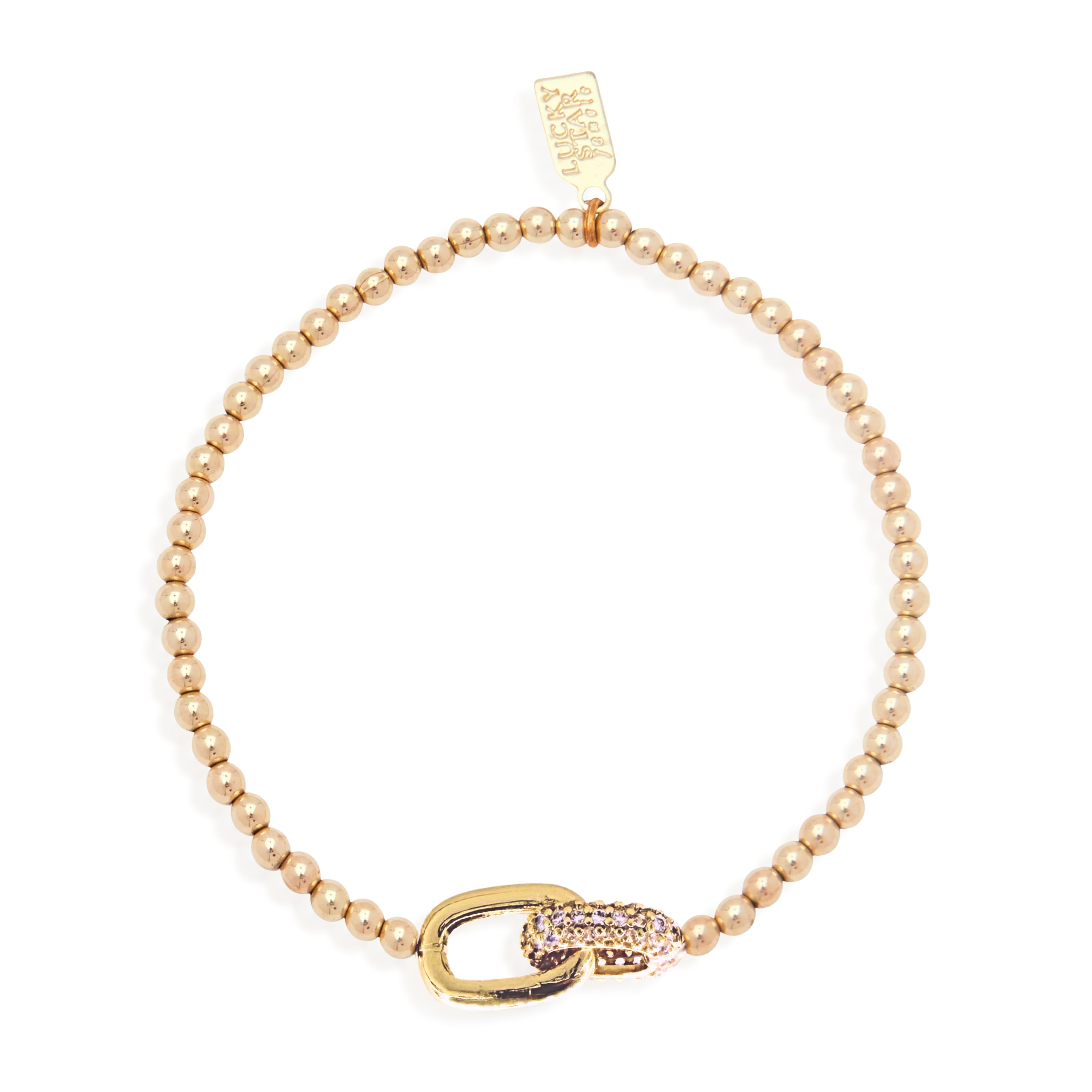 The missing link in your collection. Designed to be stacked, featuring a Yin-Yang design with CZ accents. Gold-Filled 3MM stretch beads featuring Gold-Plated chain with genuine CZ accents. One size, stretchable.