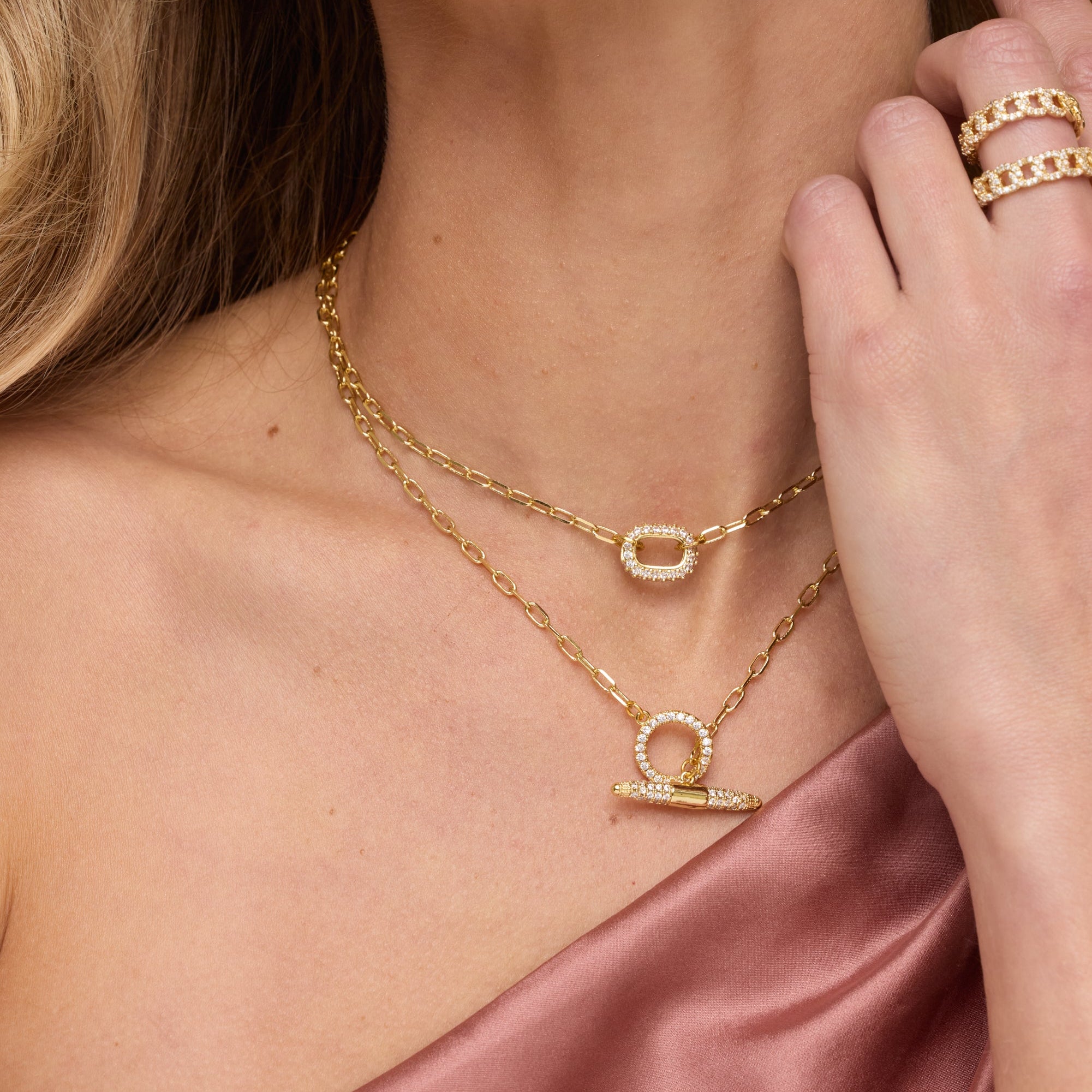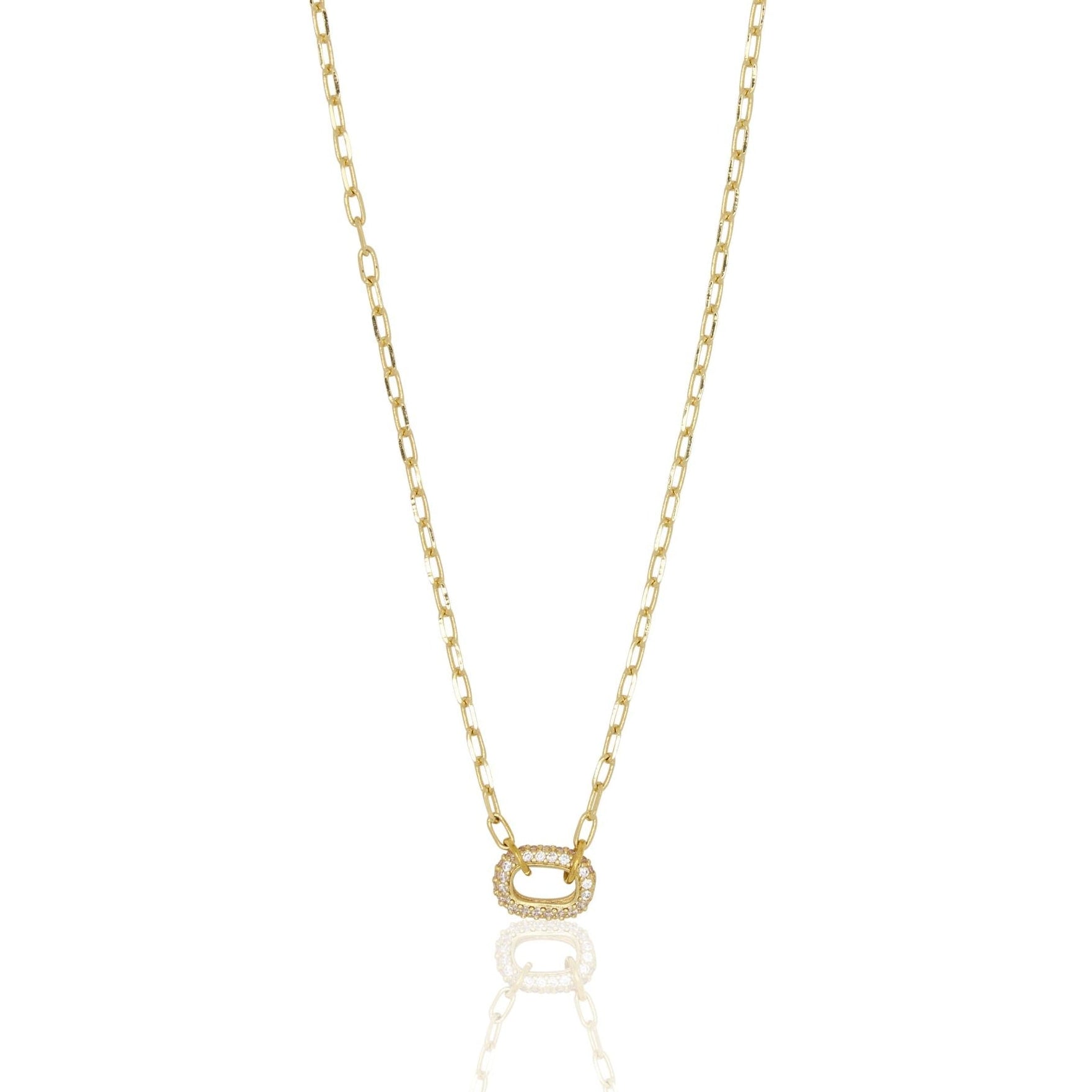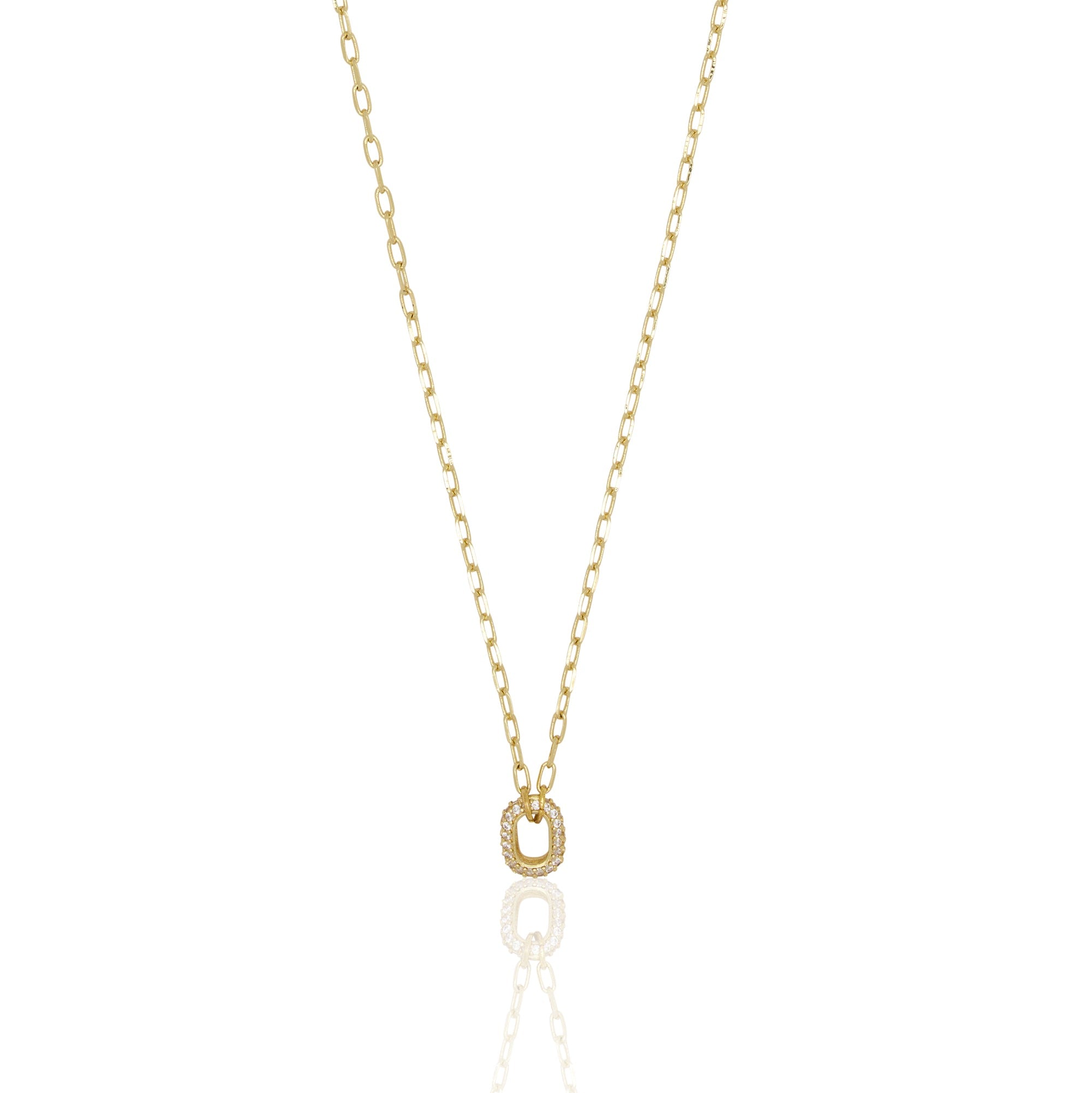 Gold Plated over Brass featuring genuine CZ accent. Measures 16" long with 2" extender.