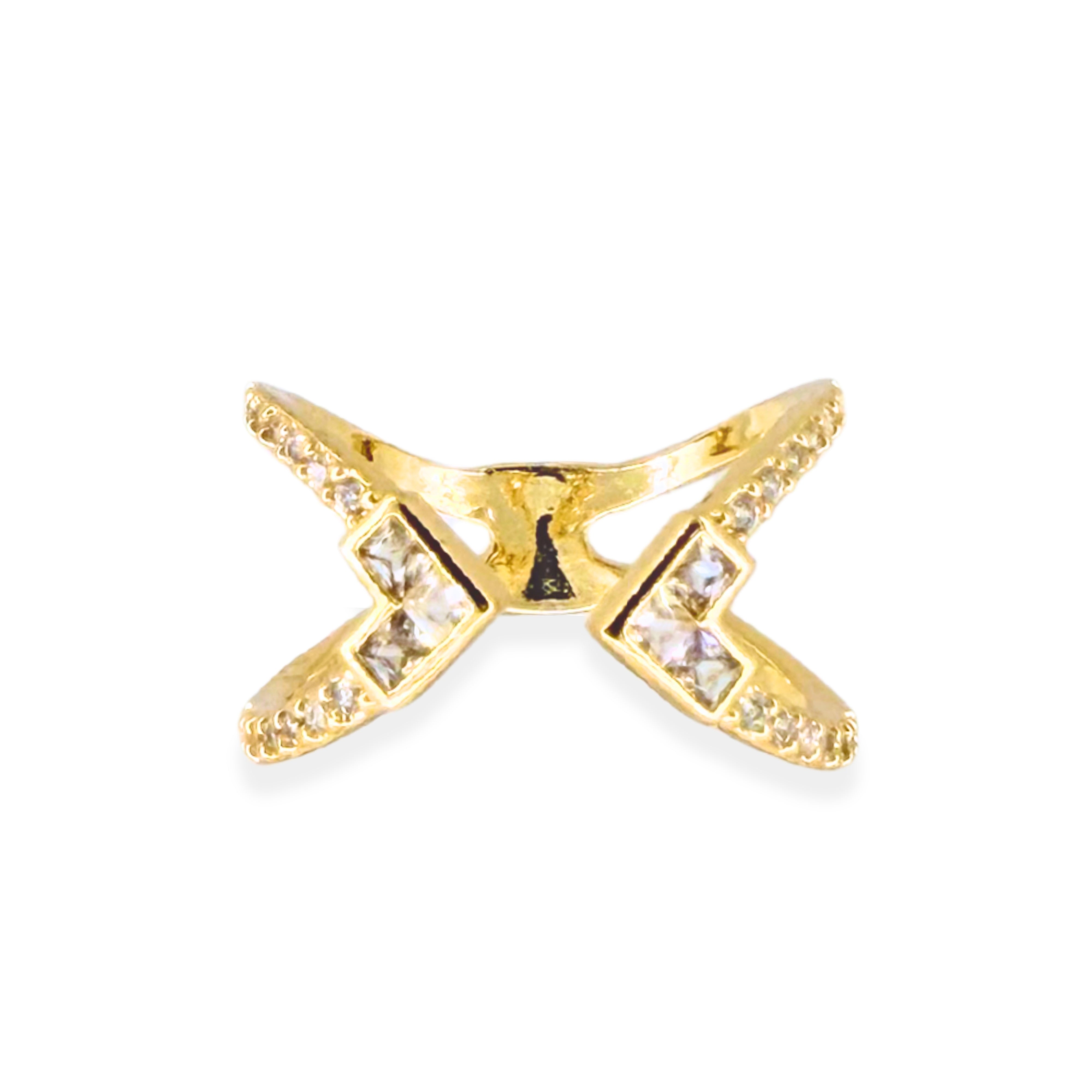 All arrows point to the Venice Ring. 14K Gold-Plated Brass with genuine CZ accents. One size, adjustable.