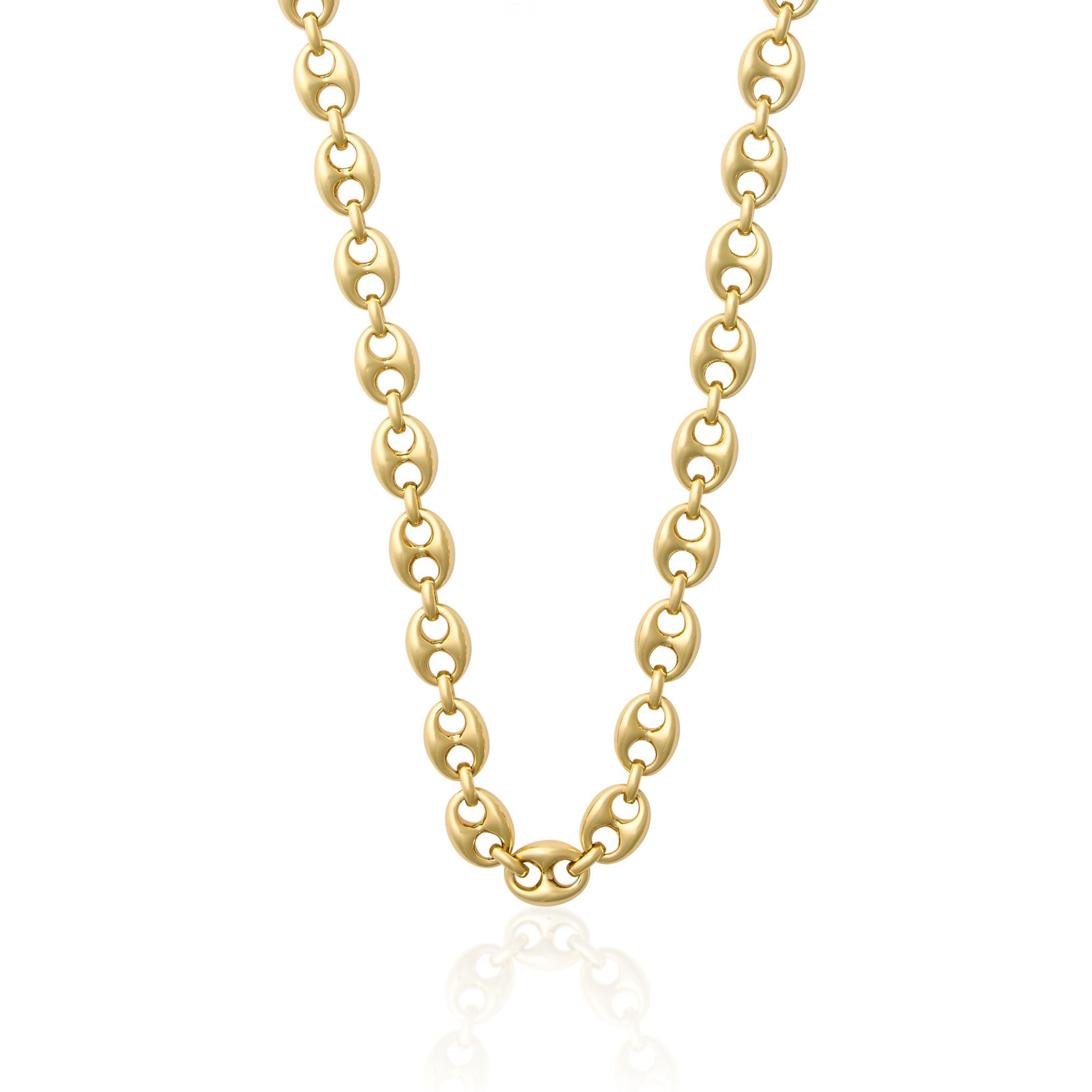 Bold style mixed with timeless design. 14kt Gold-Plated over brass. Measures 16" long with 2" extender.