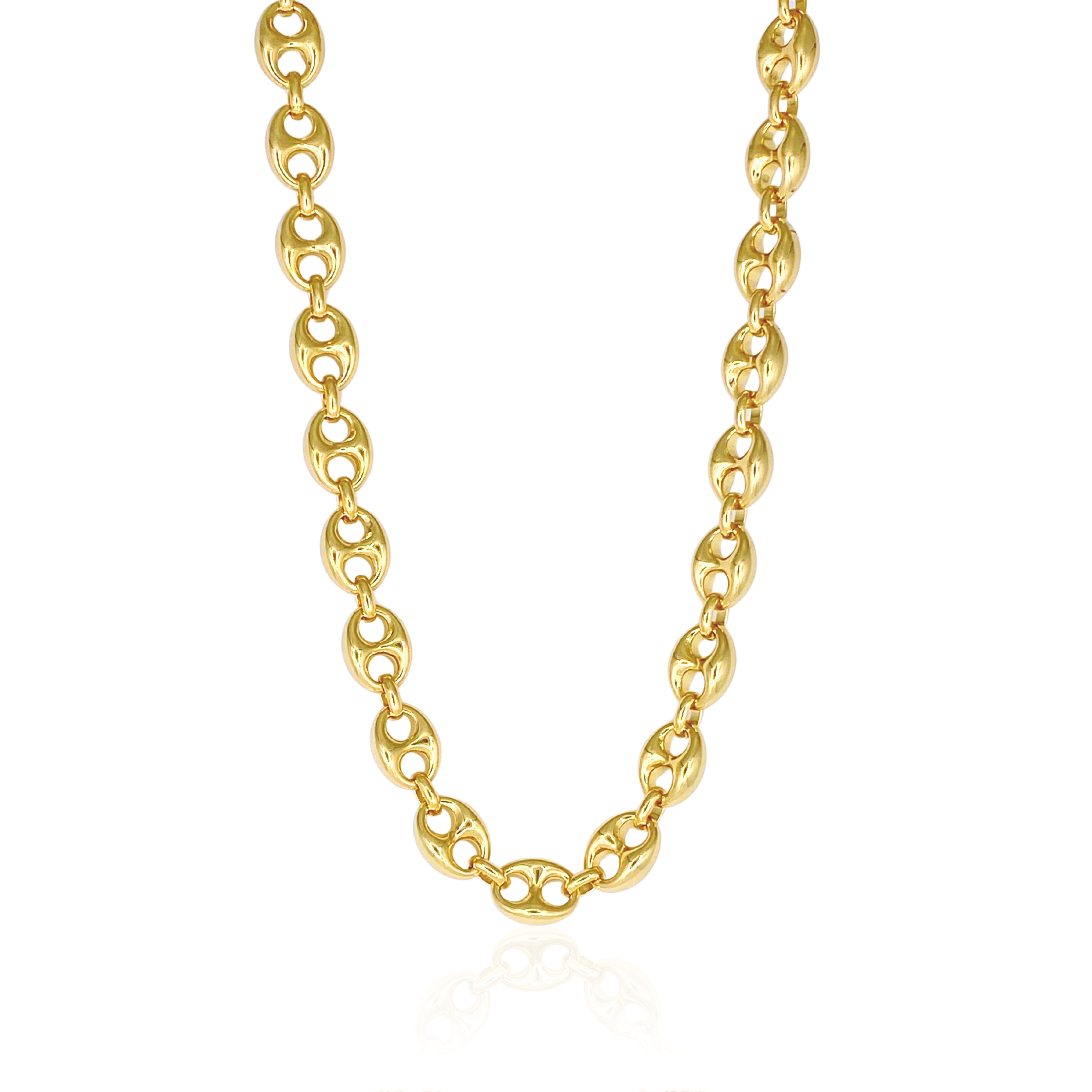 Bold style mixed with timeless design. 14kt Gold-Plated over brass. Measures 16" long with 2" extender.