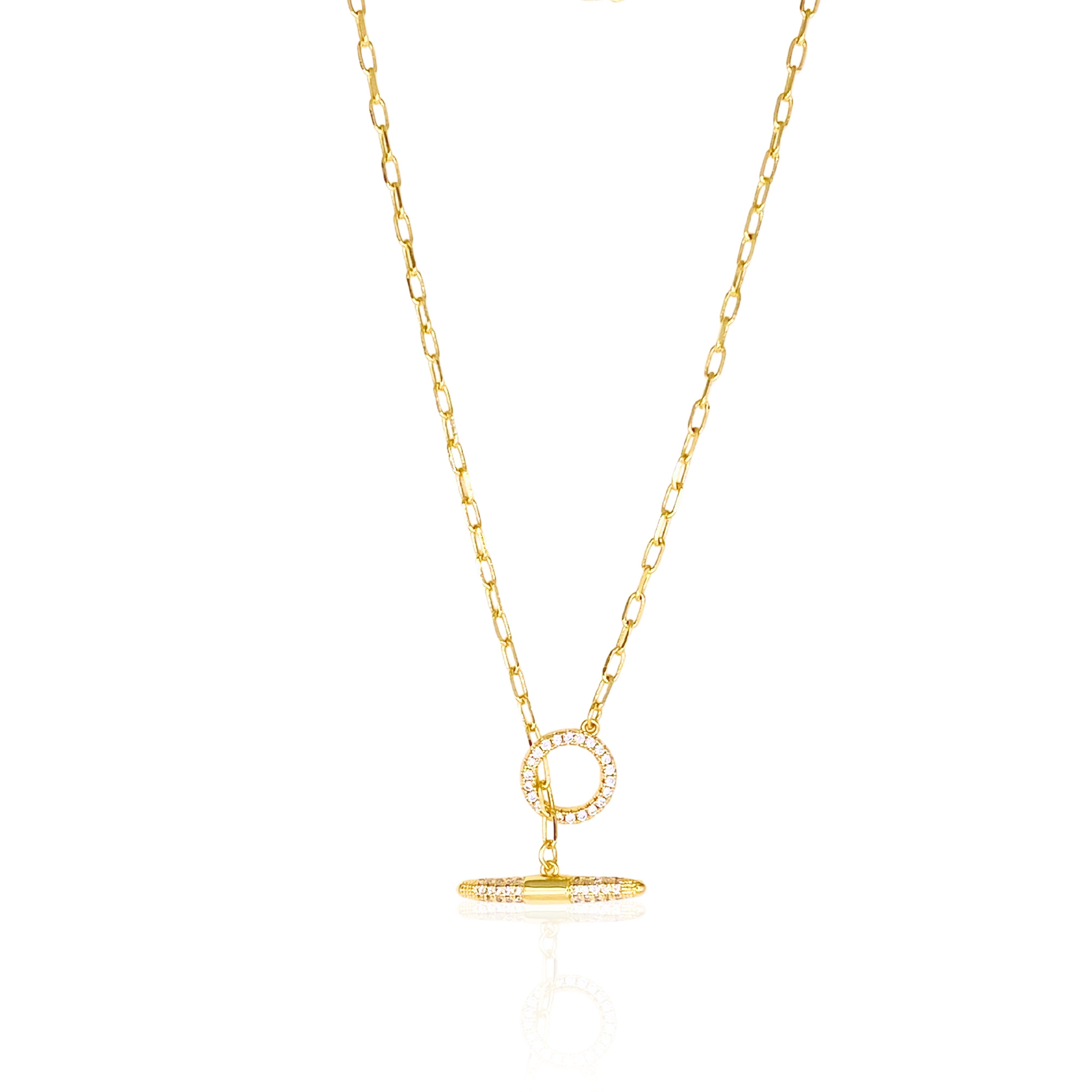 14kt Gold-Plated Over Brass. Measures 16" Long with genuine CZ toggle.