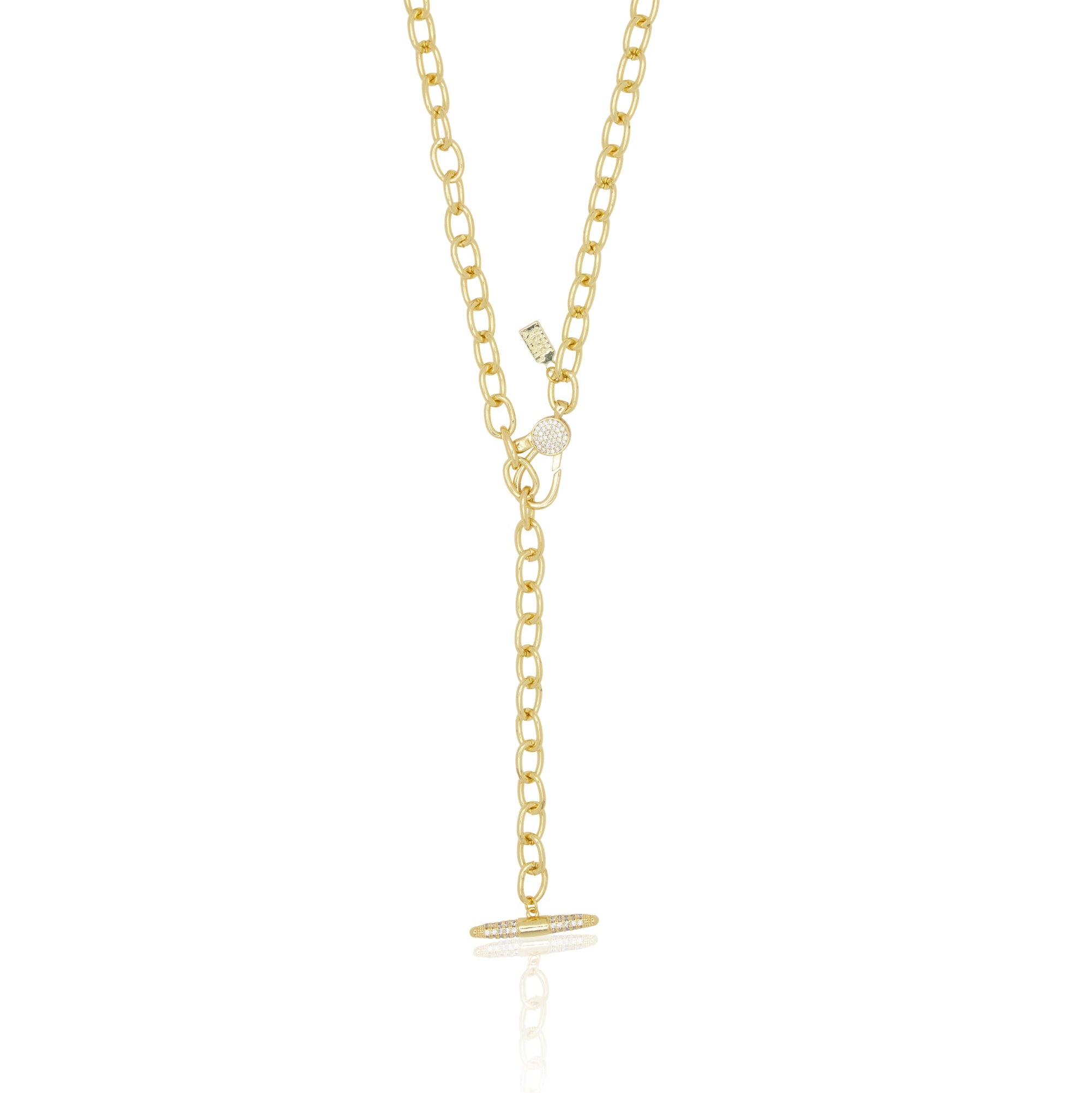 3-in-1 piece you'll find a million ways to wear. 18kt Gold Plated chain with an adjustable CZ clasp closure. Adorned with Genuine CZ accents. Can be worn as a lariat, necklace or bracelet.