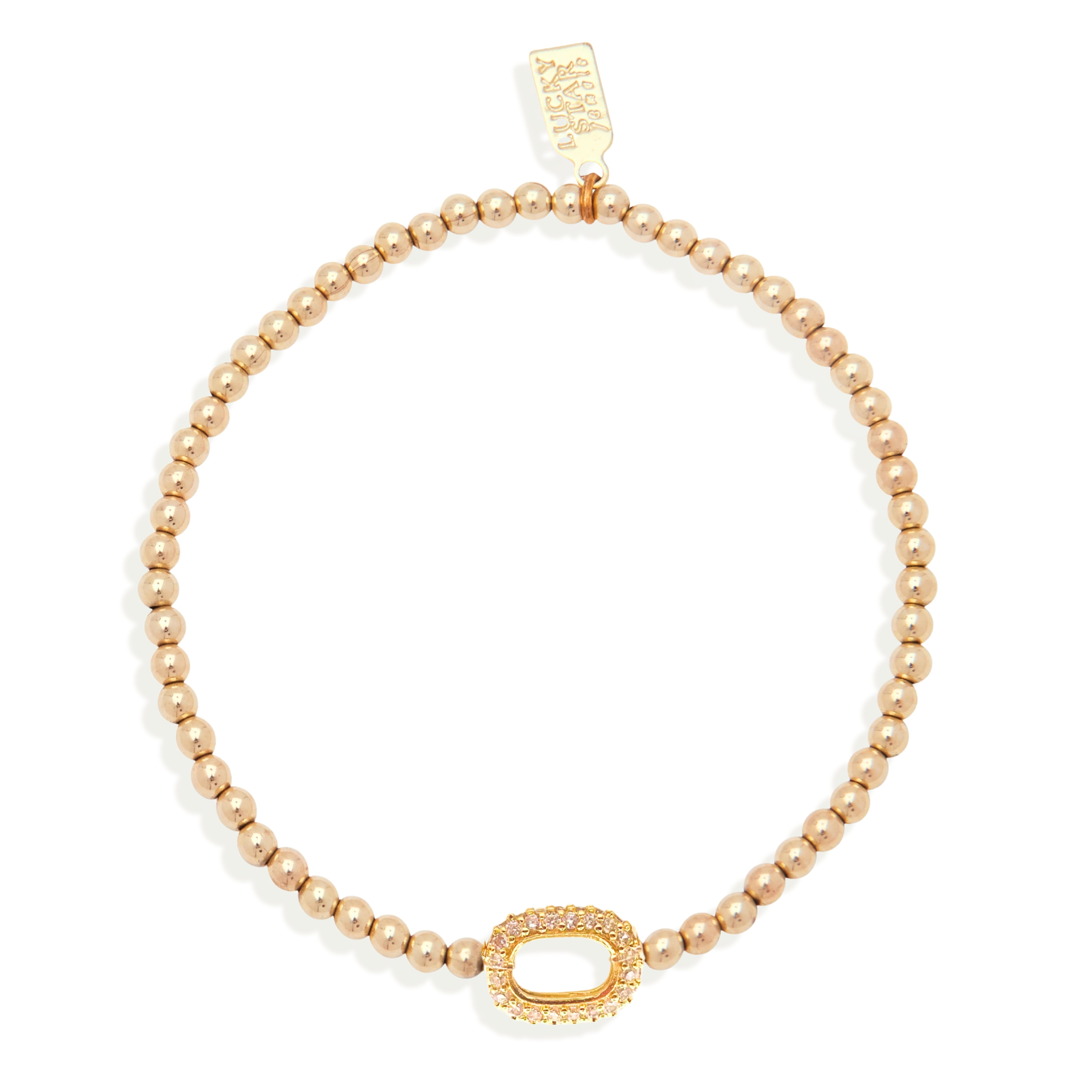 14kt Gold Filled 3MM Beads with 14kt gold plated brass chain. Features genuine CZ stones. One Size stretchable.