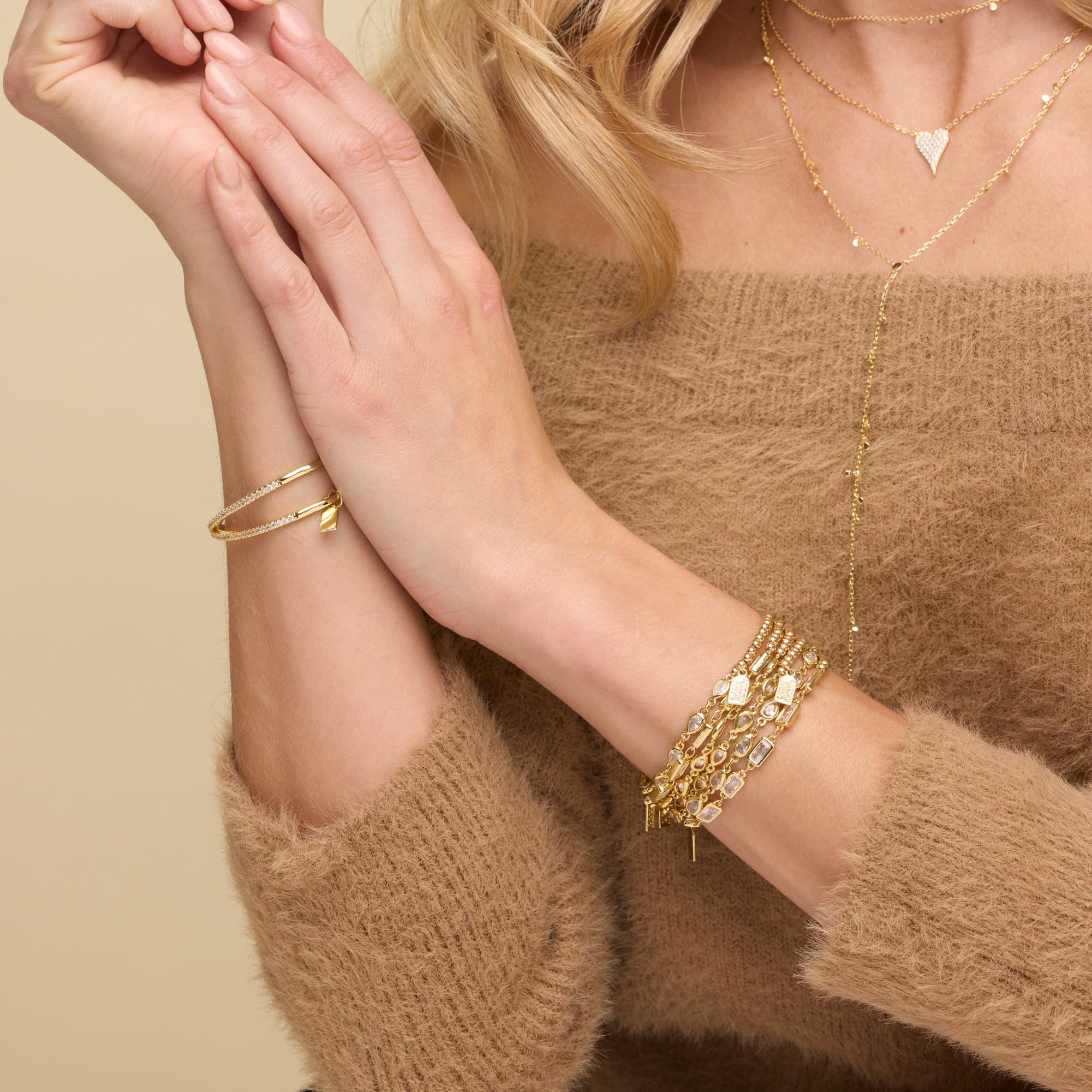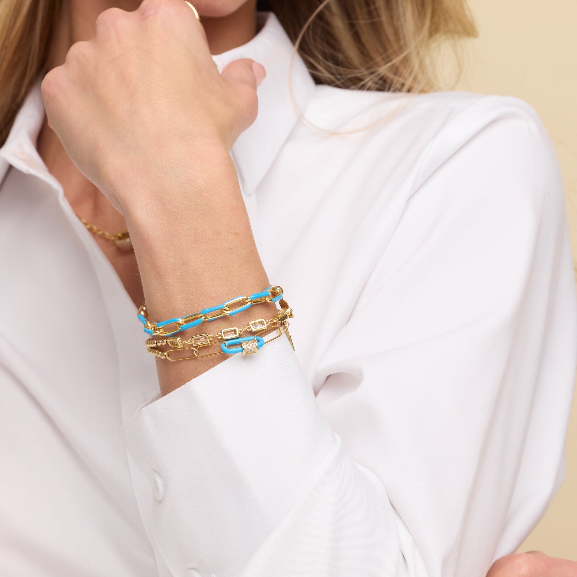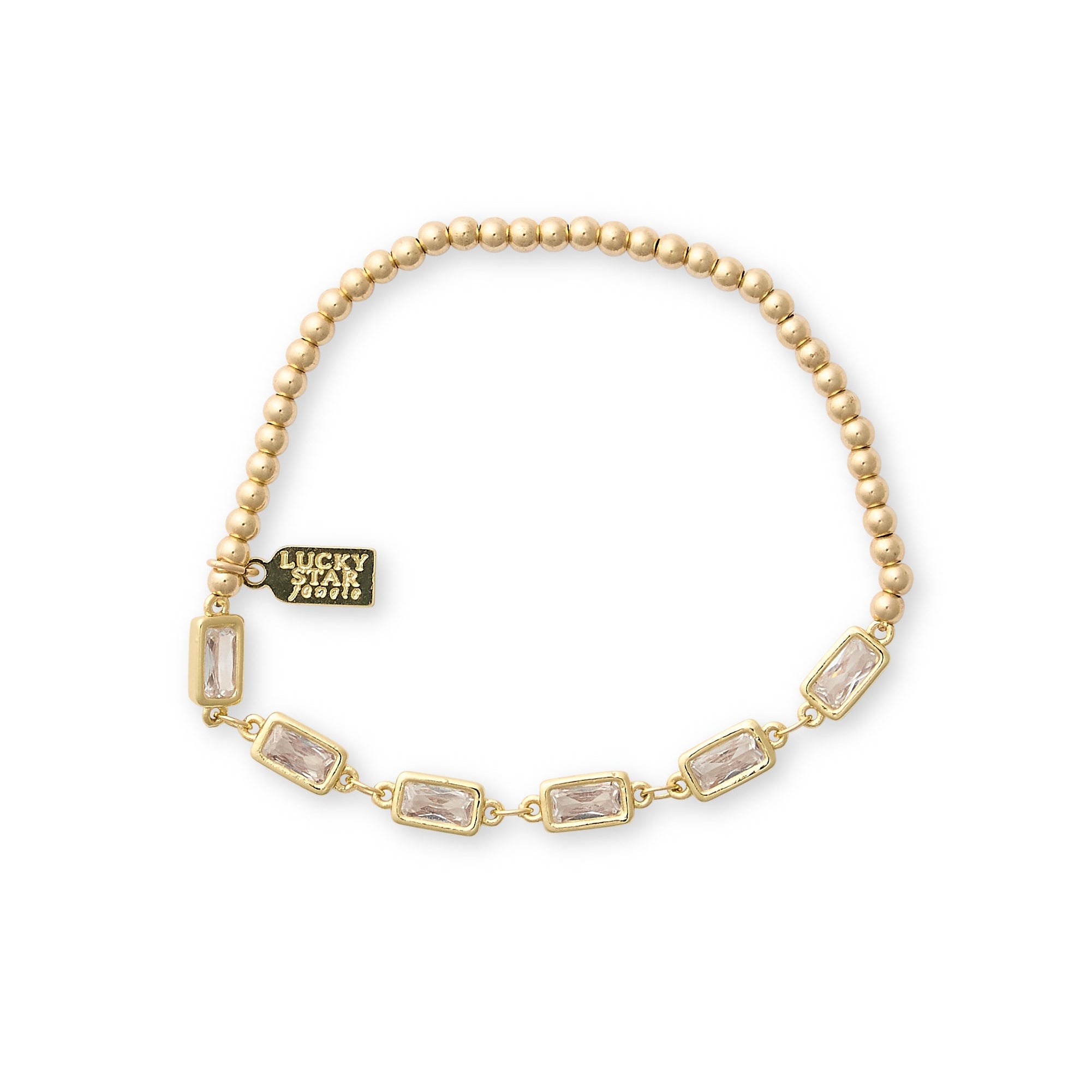 14kt Gold Filled 3MM Beads with our Signature CZ Block 14kt gold plated brass chain. Features genuine CZ stones. One Size stretchable.