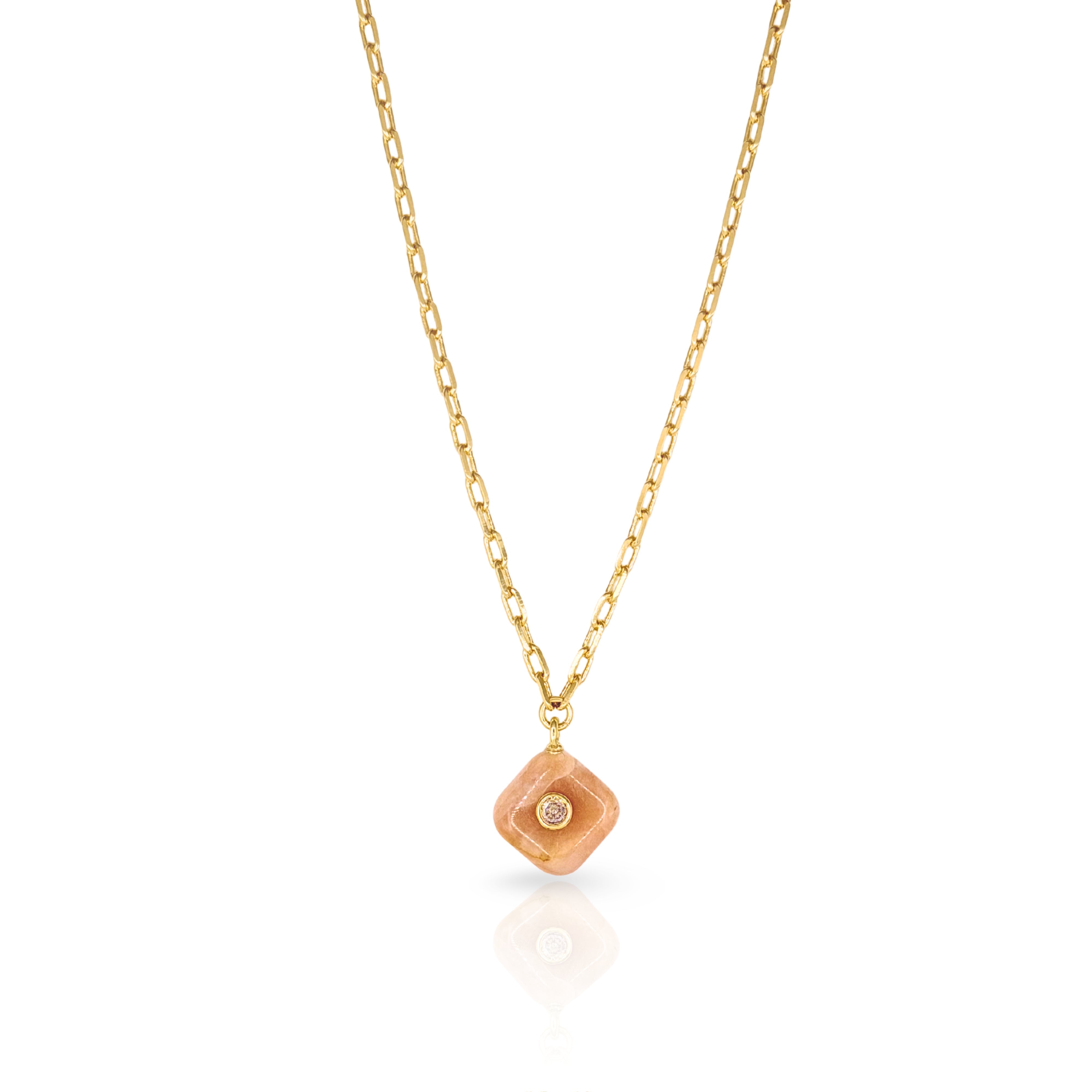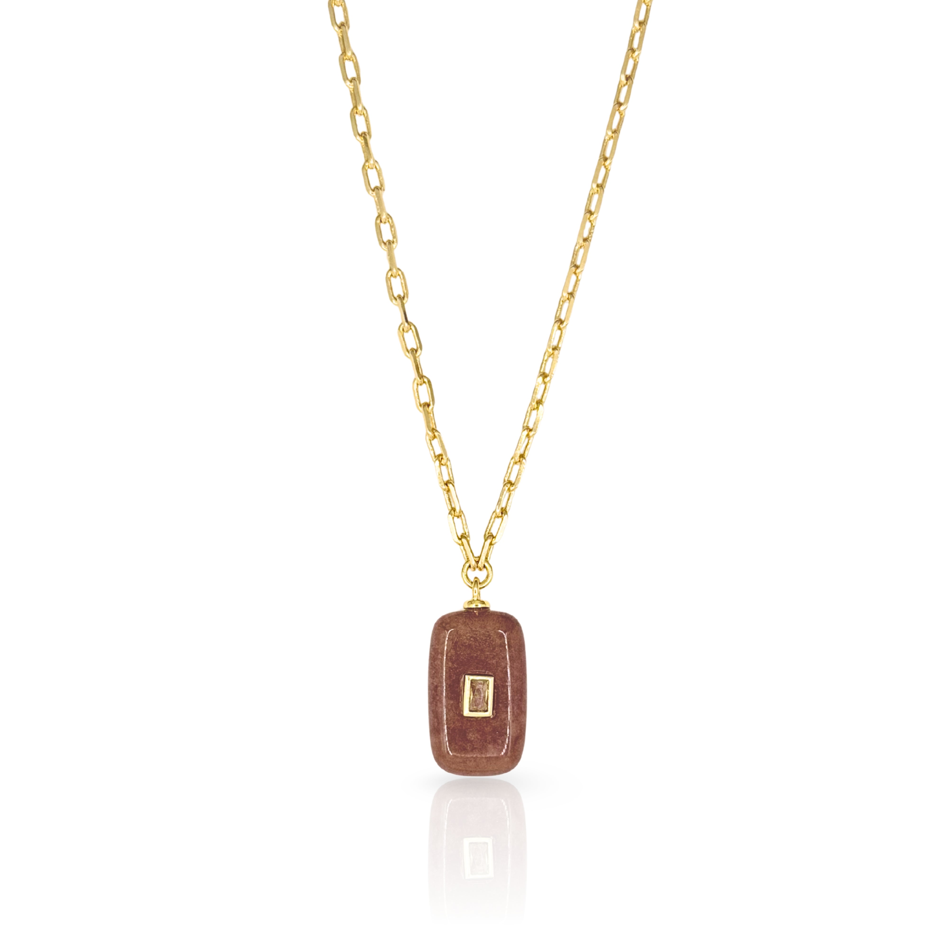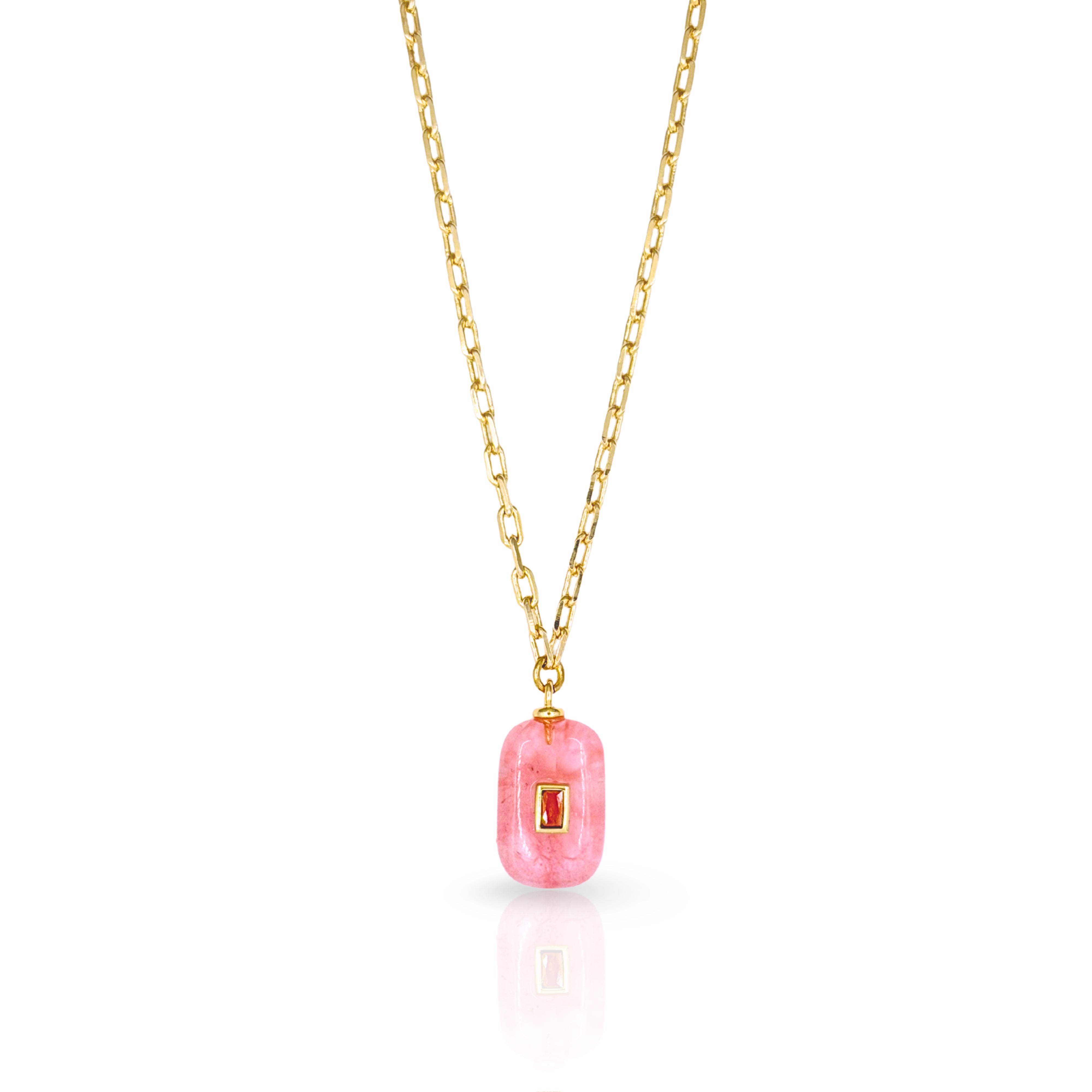 Designed to layers and satisfy your collections sweet tooth! 14K Gold Plated Brass chain with Genuine gemstone charm pendant featuring genuine CZ stone accent. Measures 16" long with 2" extender chain. Gem Pendant ranges from .75" to 1" drop.