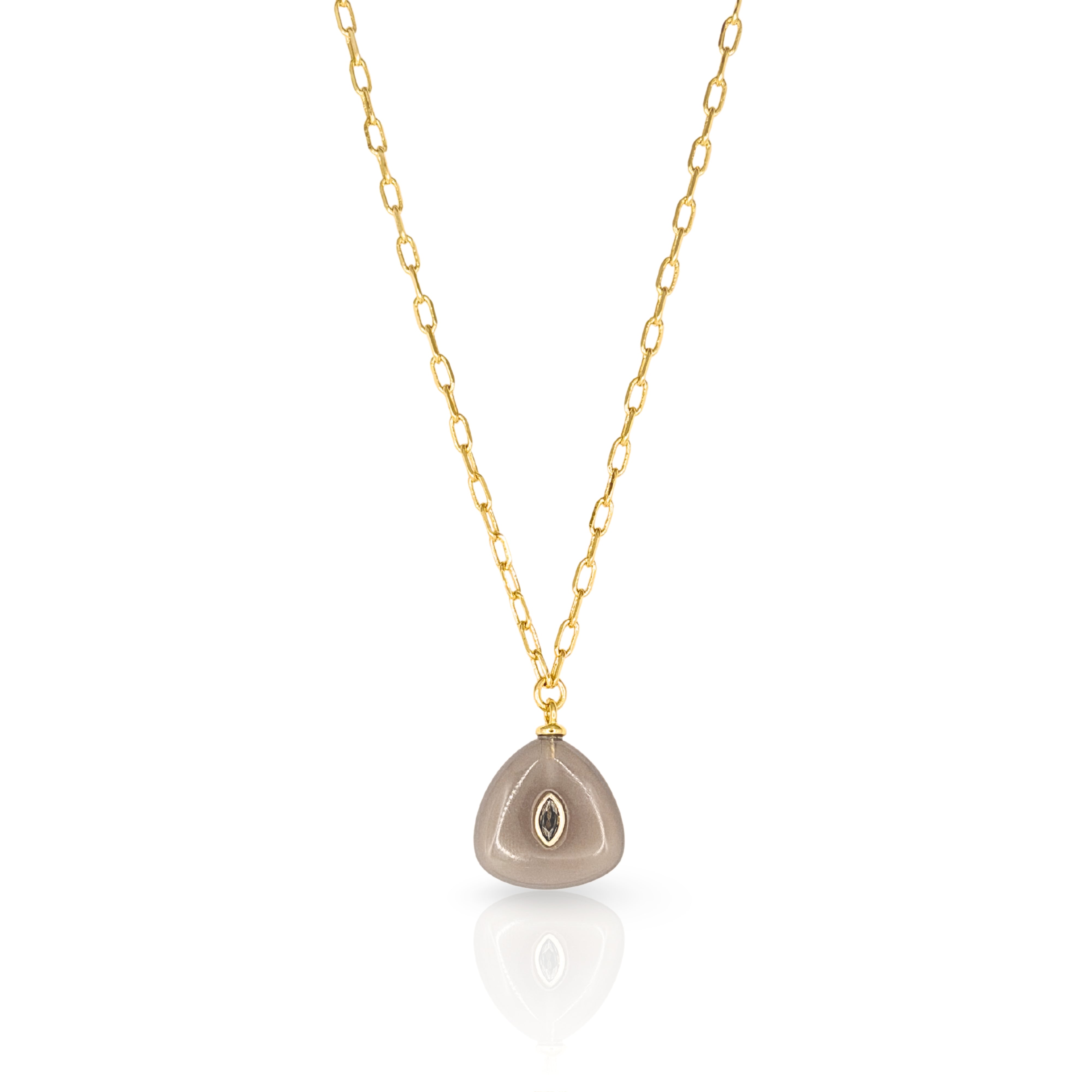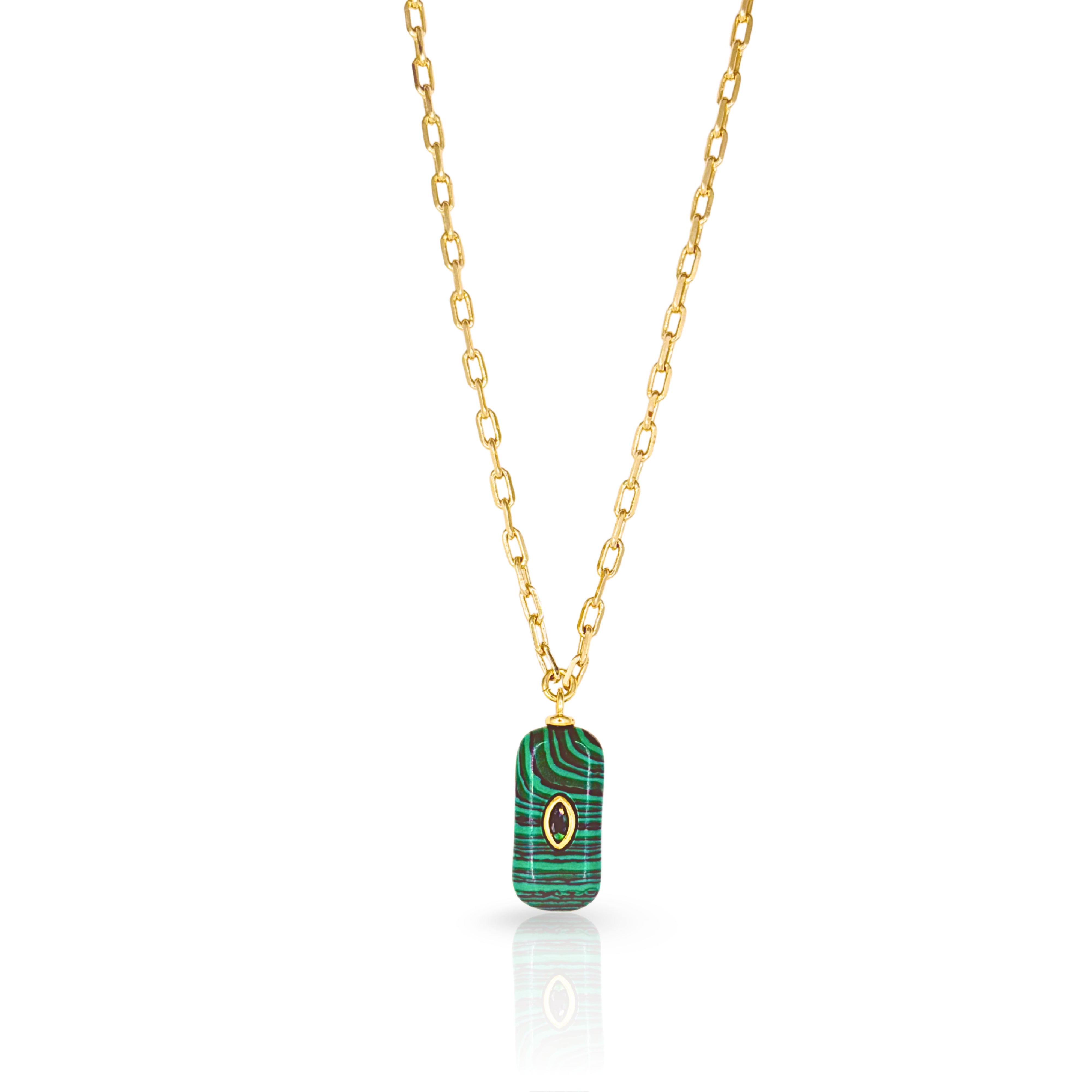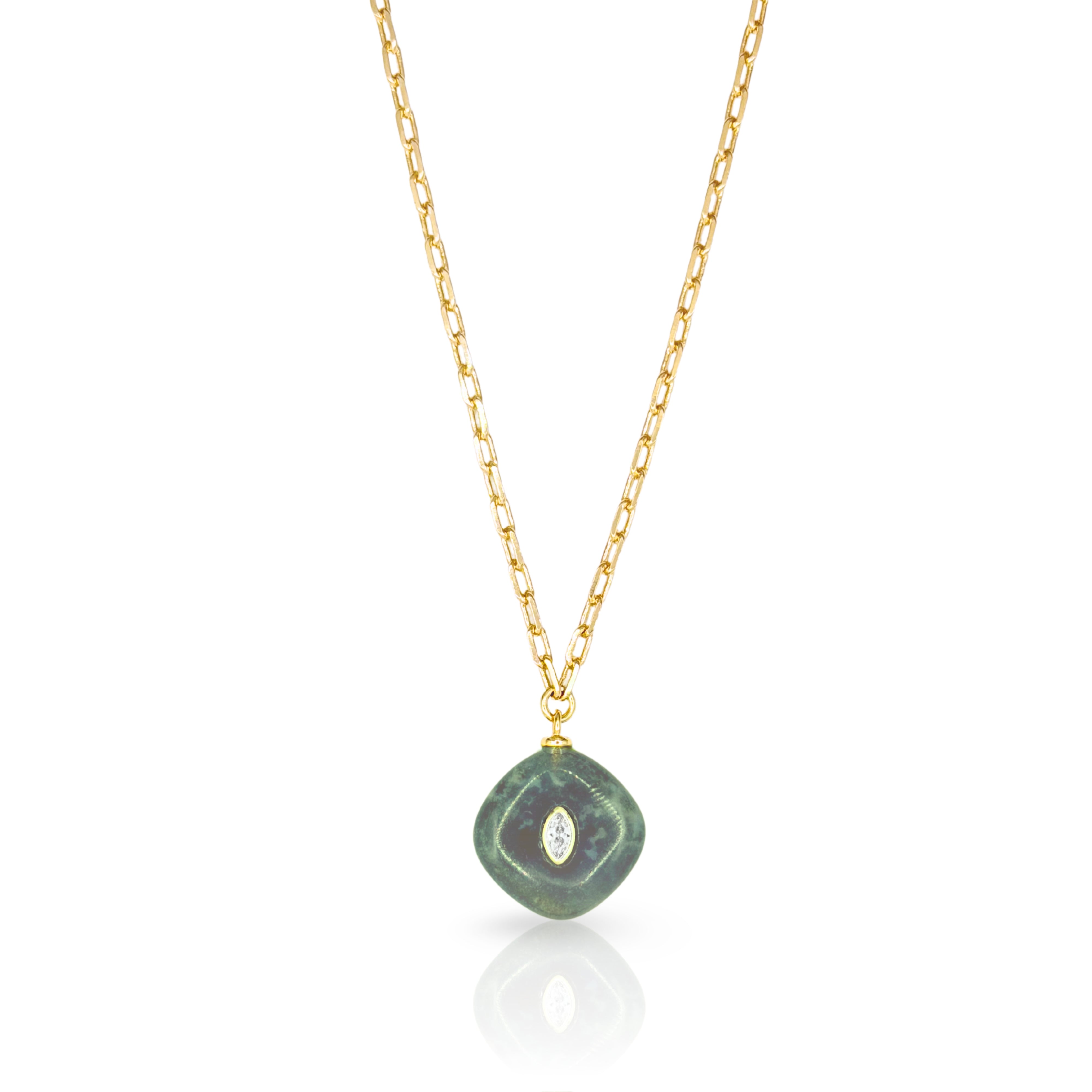 Designed to layers and satisfy your collections sweet tooth! 14K Gold Plated Brass chain with Genuine gemstone charm pendant featuring genuine CZ stone accent. Measures 16" long with 2" extender chain. Gem Pendant ranges from .75" to 1" drop.