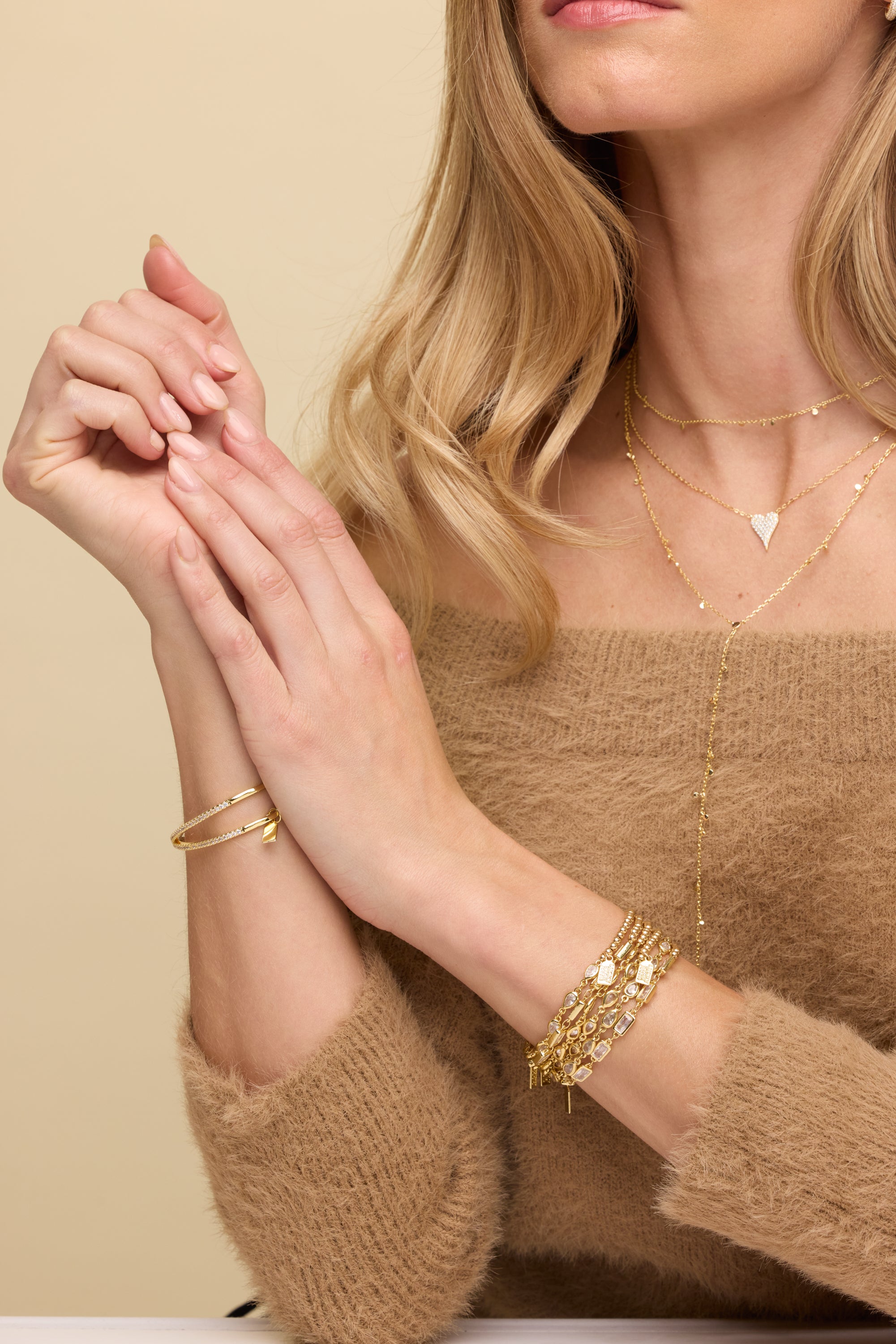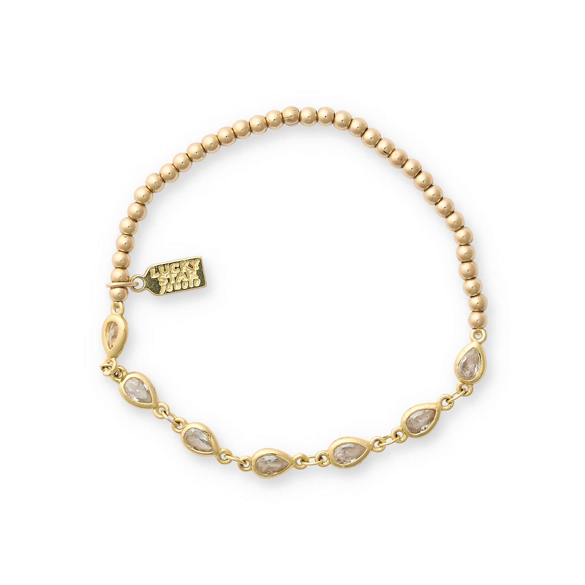 14kt Gold Filled 3MM Beads with our Signature Miramar 14kt gold plated brass chain. Features genuine CZ stones. One Size stretchable.