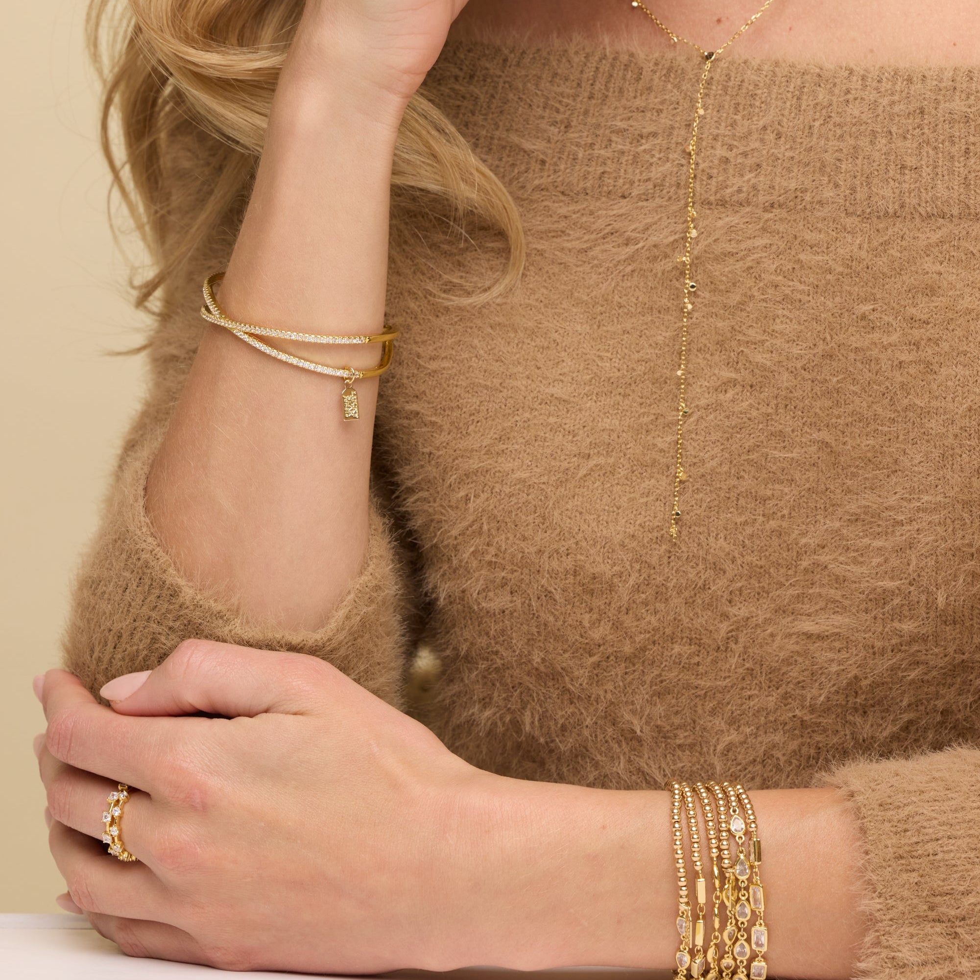 The X Factor For Your Collection. 14K Gold-Plated Brass With Genuine CZ Accents. One Size, Adjustable. Pair With Our "Pave X Ring"